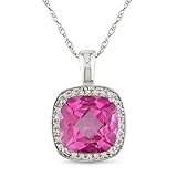 10k White Gold, Diamond and Pink Sapphire Pendant with Chain, (.01 cttw, GH Color, I2-I3 Clarity), 17"
